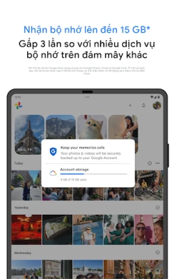 Google Photos là không gian hoàn hảo để lưu giữ và tôn vinh mọi khoảnh khắc đáng nhớ của bạn. Với mỗi Tài khoản Google, bạn được cung cấp 15 GB bộ nhớ đám mây miễn phí*, gấp nhiều lần so với các dịch vụ khác, đảm bảo mọi bức ảnh và video quý giá luôn được sao lưu tự động và an toàn trên mọi thiết bị. Hãy để Google Photos trở thành ngôi nhà chung cho tất cả ký ức của bạn, từ những kỷ niệm cũ đến những khoảnh khắc mới nhất, được tập hợp từ mọi ứng dụng và thư viện, mà không còn lo lắng về việc hết dung lượng trên điện thoại.