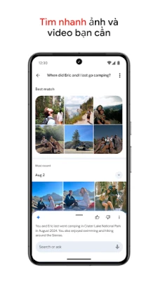 Nâng tầm những bức ảnh đẹp nhất của bạn với bộ công cụ chỉnh sửa tích hợp trí tuệ nhân tạo của Google Photos. Từ việc loại bỏ chi tiết gây rối mắt bằng Bút Tẩy Thần Kỳ, làm rõ ảnh mờ nét với tính năng Làm Rõ Ảnh, đến việc tối ưu ánh sáng với Đèn Chụp Chân Dung – mọi chỉnh sửa phức tạp đều trở nên thật đơn giản chỉ với vài chạm. Không chỉ vậy, việc tìm kiếm kỷ niệm giờ đây cũng trực quan hơn bao giờ hết; bạn chỉ cần mô tả bằng ngôn ngữ tự nhiên, chẳng hạn "Yến vẽ tranh ở sân sau" hay "chèo thuyền kayak trên hồ nước bao quanh là núi", Google Photos sẽ nhanh chóng đưa bạn đến đúng khoảnh khắc đó. Thư viện ảnh của bạn cũng sẽ luôn ngăn nắp với khả năng tự động nhóm các ảnh trùng lặp, phân loại thông minh ảnh chụp màn hình, tài liệu, và một Thư mục Bảo mật được bảo vệ để cất giữ những nội dung riêng tư.