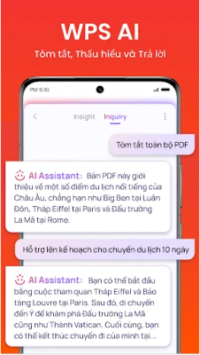 Giải phóng tiềm năng làm việc của bạn ngay trên thiết bị Android với WPS Office, một bộ ứng dụng văn phòng toàn diện được tăng cường bởi sức mạnh đột phá của WPS AI. Tưởng tượng một trợ lý luôn sẵn sàng biến ý tưởng thành hiện thực: từ việc tạo lập các bản tóm tắt cuộc họp sắc sảo, phác thảo kế hoạch sự kiện chi tiết, đến xây dựng sơ yếu lý lịch chuyên nghiệp, WPS AI sẽ nhanh chóng cung cấp nội dung chất lượng cao chỉ từ những yêu cầu đơn giản của bạn. Hơn thế nữa, WPS AI không chỉ dừng lại ở việc sáng tạo; nó còn là công cụ đắc lực giúp bạn cải thiện và làm rõ các văn bản, mang đến sự chuyên nghiệp và trau chuốt cho mọi tài liệu, cách mạng hóa quy trình viết lách của bạn.